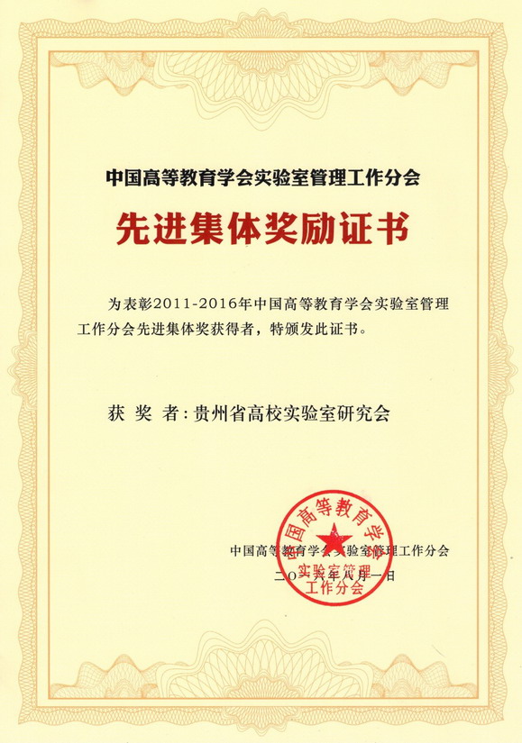 热烈祝贺贵州省高校实验室研究会荣获全国高校实验室工作先进集体称号