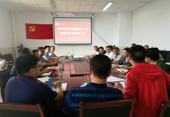 9月12日下午,贵州大学副校长李军旗一行莅临茶学院检查指导实验室工作,实验设备处处长何一萍、副处长姚丽华,资产管理处副处长马超等陪同。