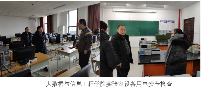 根据学校实验室与设备处《关于切实做好元旦节和寒假期间全校实验室安全工作的通知(实设〔2018〕32号)》、研究生管理工作处《关于做好元旦节假期研究生安全教育工作的通知(贵大研工〔2018〕90号)》及《贵州大学关于立即开展实验室安全检查工作的紧急通知》等文件精神, 2019年1月2日下午,大数据与信息工程学院主管实验室管理的副院长丁召带领实验室人员对实验室进行了安全隐患排查,重点针对危险化学品、尤其是剧毒(易制毒)化学品、易燃易爆化学品、压缩气瓶的安全管理,危险废弃物的处置管理以及实验设施设备安全管理等进行了全面细致的检查。