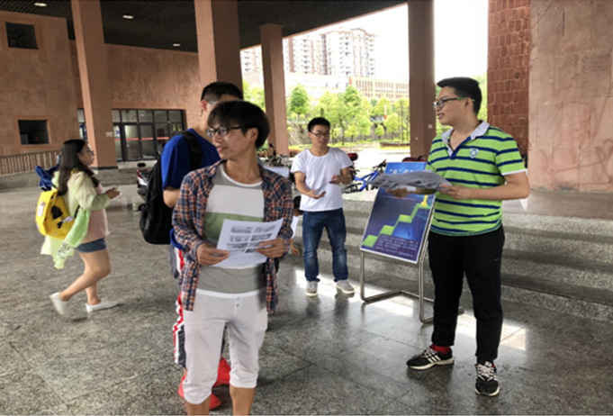 讲座开展前期,我院研会干事在学院旁对路过的同学进行了讲座和用电常识宣传单的派发,引起了同学们对本次讲座的兴趣,增强了同学们的用电安全意识。