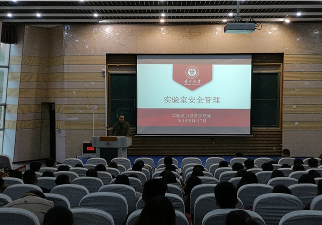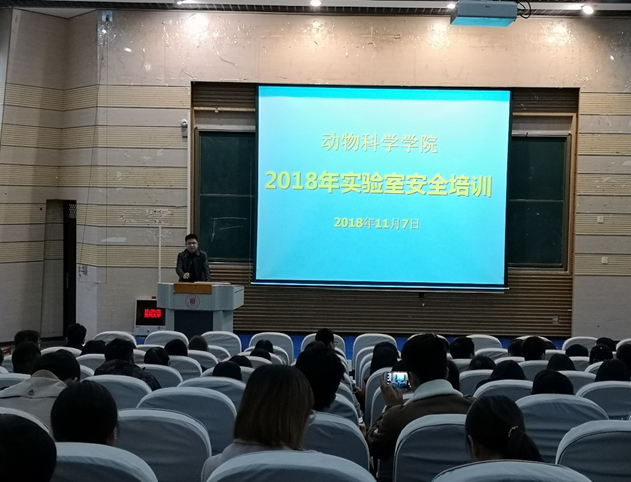 2018年11月7日下午,动物科学学院在西校区西楼117DT圆形报告厅,举办2018年实验室安全培训会。贵州大学实验与设备管理处副处长宋强出席培训会并进行实验室安全培训。会议由动物科学学院副院长陈超主持,学院全体教师和2016、2017、2018级全日制研究生,共计200余人参加培训会。