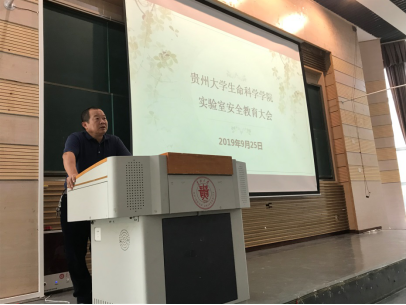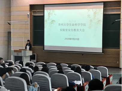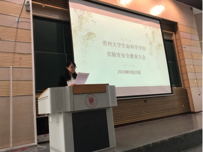 为贯彻落实贵州大学首届“实验室安全活动月”的主题“学安全、懂安全、重安全”,树立我院师生的实验室安全红线意识和底线思维,提高师生实验室安全应急处置能力,结合我院崇德楼9月21日发生的一起实验室烘箱起火事件,9月25日下午,在西校区西楼117报告厅召开了生命科学学院实验室安全教育大会。参会人员包括:党委书记任登鸿教授、党委副书记令狐莹、实验中心主任王嫱、实验中心专职实验教师以及生命科学学院全体学生。