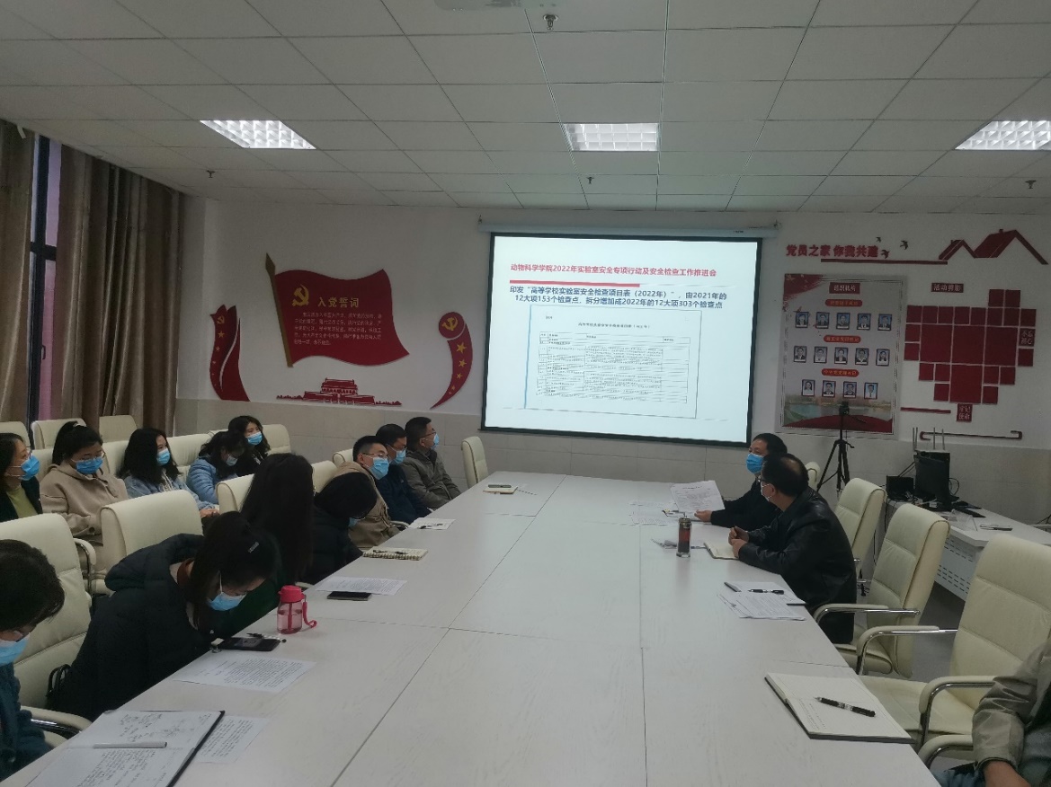 为进一步加强我院实验室安全管理,确保新冠肺炎疫情常态化防控下实验室有序运行,保障师生安全和校园稳定,4月1日上午,动物科学学院在崇学楼206会议室召开2022年实验室安全专项行动及安全检查工作推进会。学院副院长欧德渊、实验实践教学中心主任肖超能及相关人员参加会议。会议由肖超能主持。