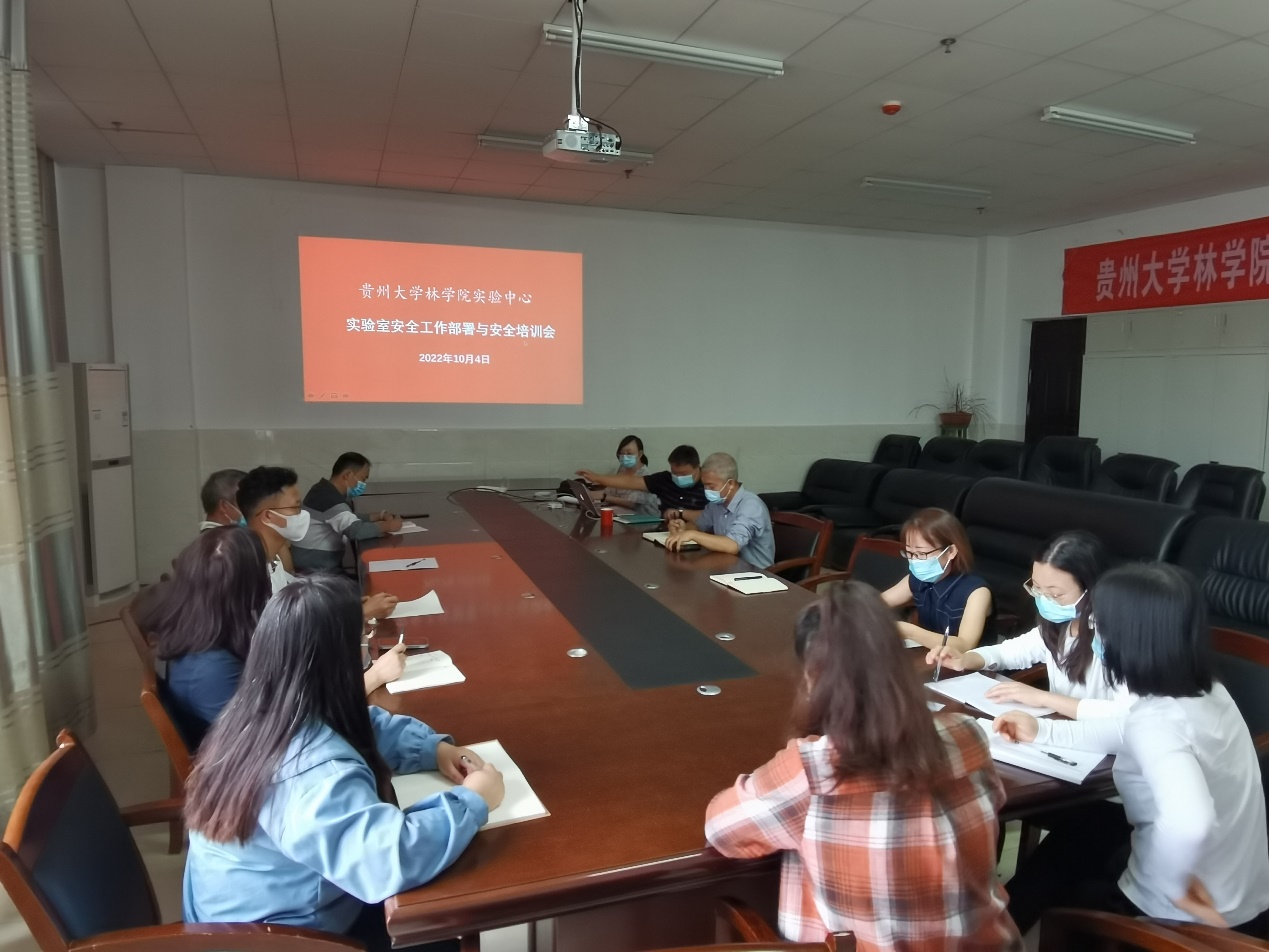 为进一步规范和加强我院实验室安全管理工作,及时发现和消除实验室安全隐患,确保常态化疫情防控下全院教学、科研实验室的安全运行,保障正常教学科研秩序和广大师生的人身安全,按照《教育部办公厅关于组织开展2022年高等学校实验室安全检查工作的通知》(教发厅函〔2022〕11号)、《贵州大学关于开展2022年实验室安全检查工作的通知》(实设发[2022]5号)文件精神,和落实《关于召开实验室安全专题培训暨实验室安全工作会议的通知》文件要求,2022年10月4日上午疫情封控后全体上班的第一天,林学院实验中心在崇德楼564召开了实验室安全工作部署与安全培训会,分管副院长粟海军教授主持会议。粟院长传达了最近学校和学院对于党的二十大重要时期实验室安全工作的部署要求,带领大家学习了安全生产法规和近年来国内高校实验室安全事故警示案例,并就我院实验室安全管理薄弱环节进行了深入讨论。明确了今后一段时间实验室安全管理制度完善、能力建设和构建师生共建共享的实验室安全体系的重点工作方向。